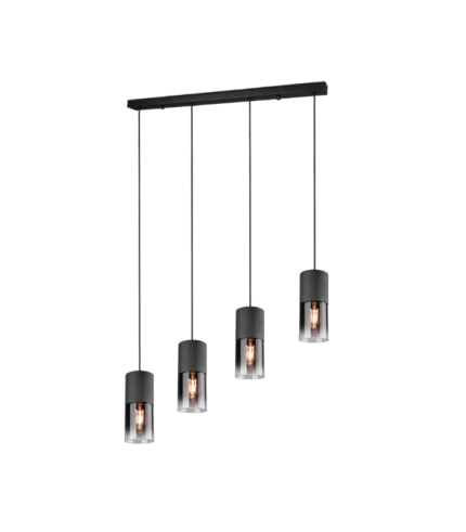 TRIO SUSPENSION ROBIN METAL NOIR MAT 4XE27 VERR FUME L80